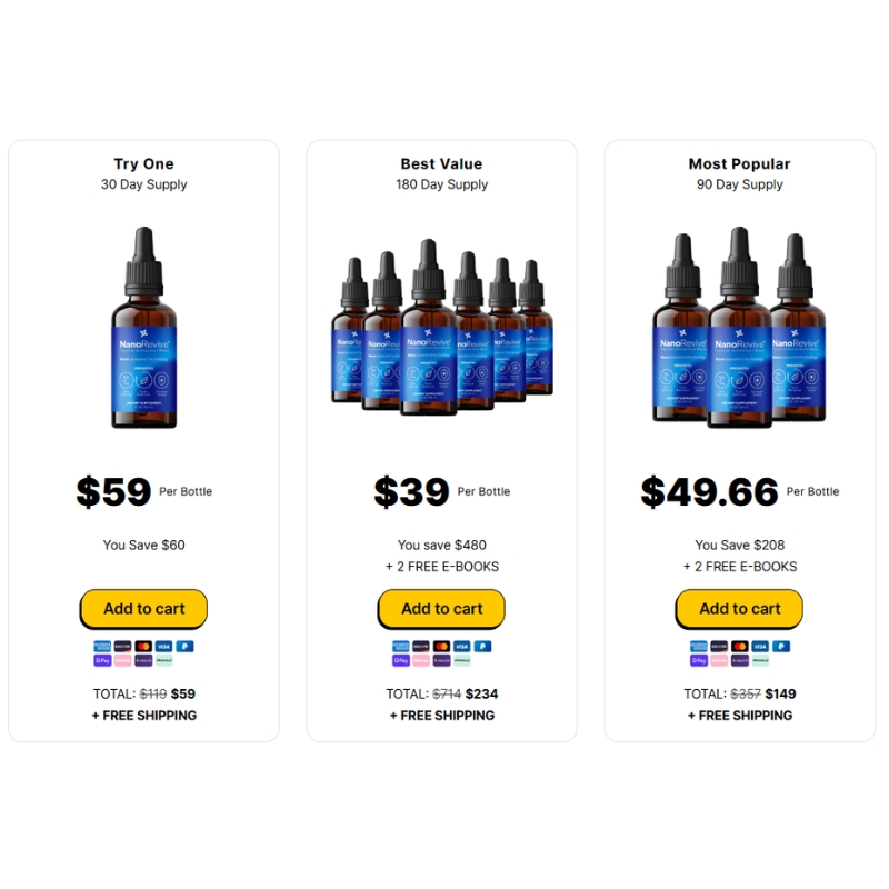 When looking to invest in your health, understanding the pricing of NanoRevive is essential. The product is available in several purchasing options to cater to different needs. Here’s a breakdown of the pricing details: