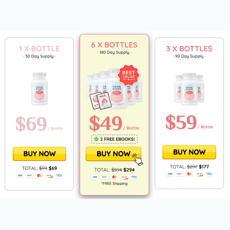 - 1 Bottle (30 Day Supply): Priced at $69 per bottle, this option is suitable for those who wish to try PrimeBiome without a long-term commitment.